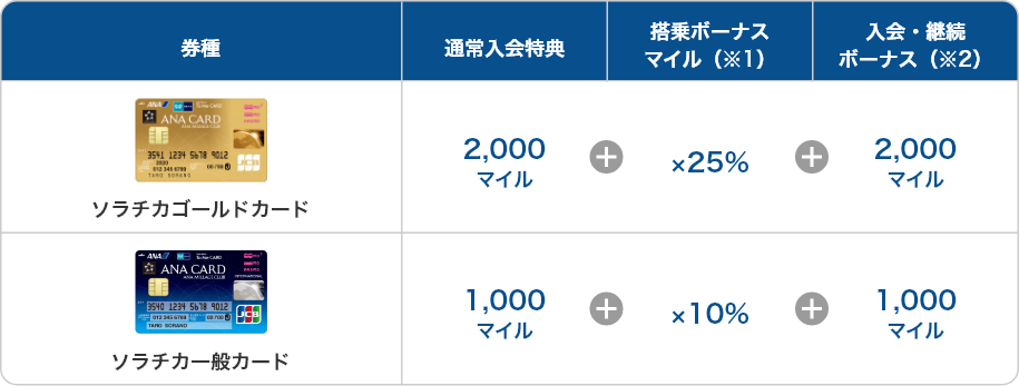 入会時のボーナスマイルや、翌年度以降ANAカードを継続すると継続ボーナスマイルがもらえます。さらに、通常のフライトマイルに加えてANA便ご搭乗ごとの割り増しボーナスマイルもあり、マイルがどんどんたまります。